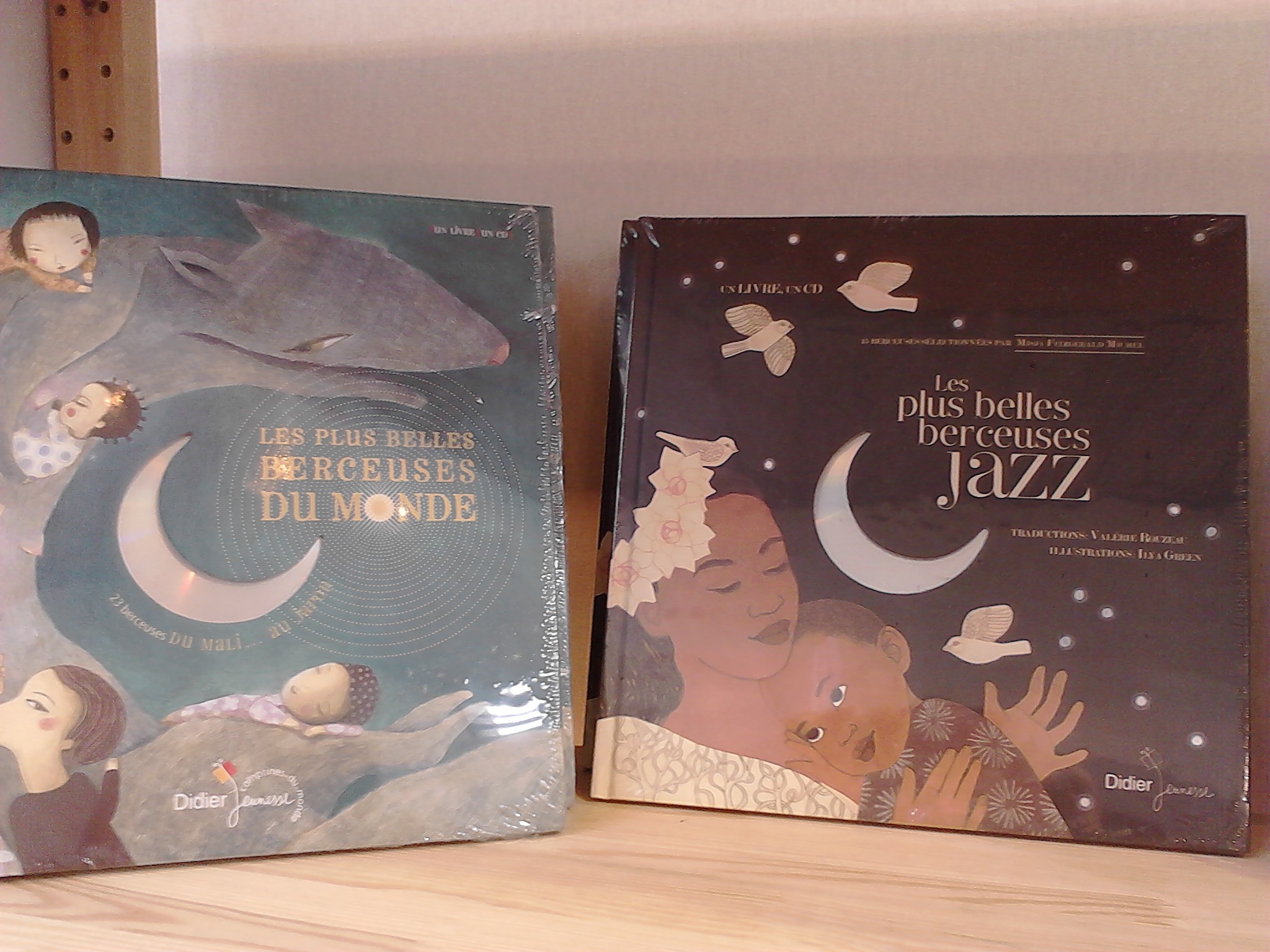 Assez rapidement, je me suis arrêtée sur le stand de Didier Jeunesse. Le stand n’était pas très grand, mais il y avait pas mal de titres très intéressants, et les personnes étaient très sympathiques, proposant même aux curieux d’écouter les berceuses qui accompagnent certains livres sur des bornes avec des casques. Chez Didier Jeunesse, j’ai remarqué la trilogie Sublutetia dont j’ai entendu beaucoup de bien et que je compte bientôt lire pour me faire mon idée. A côté des Sublutetia, Le Cœur en braille et Du Bonheur à l’envers et puis surtout la très jolie collection des Plus Belles Berceuses. Deux titres ont particulièrement attiré mon attention : Les Plus Belles Berceuses du monde et surtout Les Plus Belles Berceuses Jazz. Ce dernier titre a l’air vraiment très bien, regroupant les voix les plus célèbres du jazz avec une sélection de chansons qui fait rêver.