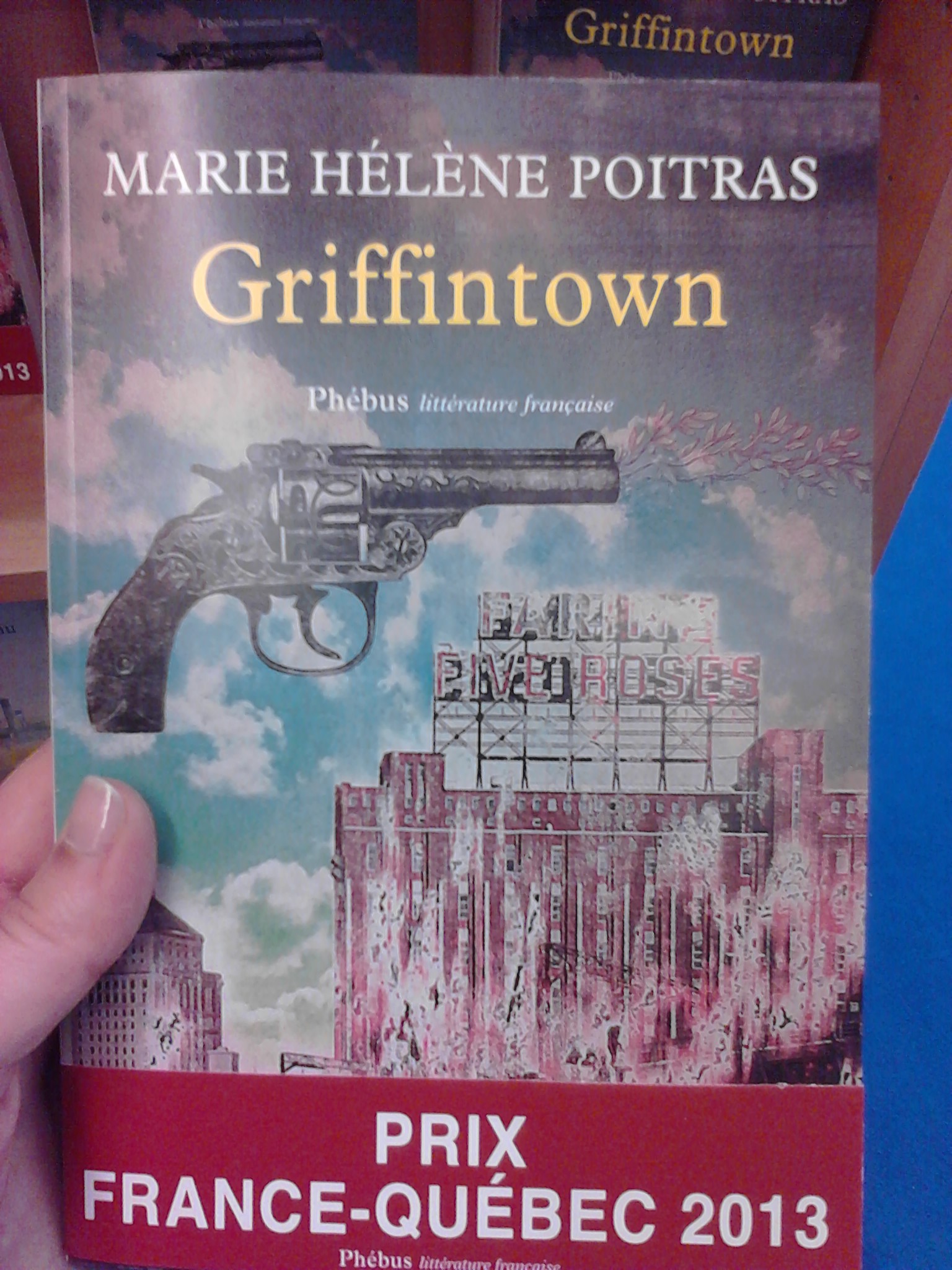 De l’autre côté de l’allée, halte devant les étagères des éditions Phébus avec le roman Griffintown de Marie Hélène Poitras. Prix France-Québec 2013, le résumé de ce livre dans le style far-west (une petite communauté vivant au milieu de nul part, où les individus ne peuvent compter que sur eux-mêmes) m’a bien plut, ainsi que sa belle couverture couleurs. Hop, je l’ajoute à ma liste tout en faisant un petit shelfie. D’une manière générale, les autres romans présentés avaient aussi l’air très intéressant. Et même si je n’ai pas tout pris en photo (je ne voulais pas non plus passer pour une folle !), il y a plusieurs titres que je compte ajouter plus tard sur ma liste d’idées de lecture.