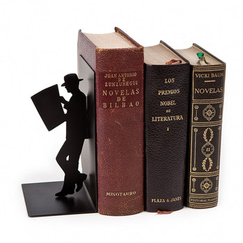serre-livresUne autre idée pour les amoureux des livres qui ont besoin d’accessoires de rangement : un serre-livres. Vous pouvez acheter des serre-livres par paire ou par unité. Je trouve qu’à l’unité, c’est aussi très pratique, car selon la manière dont est agencée votre étagère ou votre bibliothèque, vous n’avez peut-être pas assez de livres à ranger pour qu’ils soient bien calés. Dans ce cas, un seul serre-livres suffit pour caler votre rang : il suffit de le placer à l’extrêmité de votre rang et hop, le tour est joué ! J’ai trouvé ce modèle sur un site de décoration (6,95€) et je le trouve à la fois sympa et discret. Sachez néanmoins qu’il existe de très nombreux modèles de serre-livres, du plus loufoque au plus classique… De quoi faire plaisir à tous les goûts !