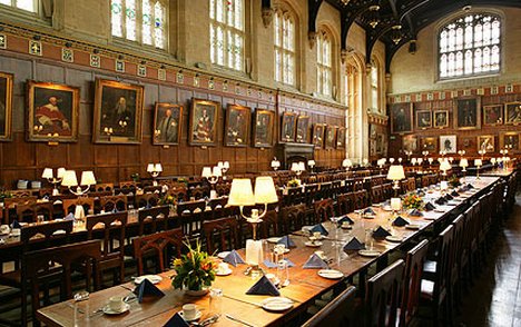 Un autre lieu a une importance cruciale dans l’univers de Harry Potter : il s’agit bien sûr de la Grande Salle. Elle sert pour les repas, pour les devoirs et pour les réunions impromptues… On se souvient même que dans un tome, les élèves y passent la nuit dans des sacs de couchage. A l’occasion, c’est aussi une superbe salle de bal. Mais c’est avant tout l’un des décors les plus magiques et les plus impressionnants. Pour décrire cette salle dans ses romans, J.K. Rowling s’est inspirée d’une véritable institution anglaise : Christ Church, l’un des collèges d’Oxford.