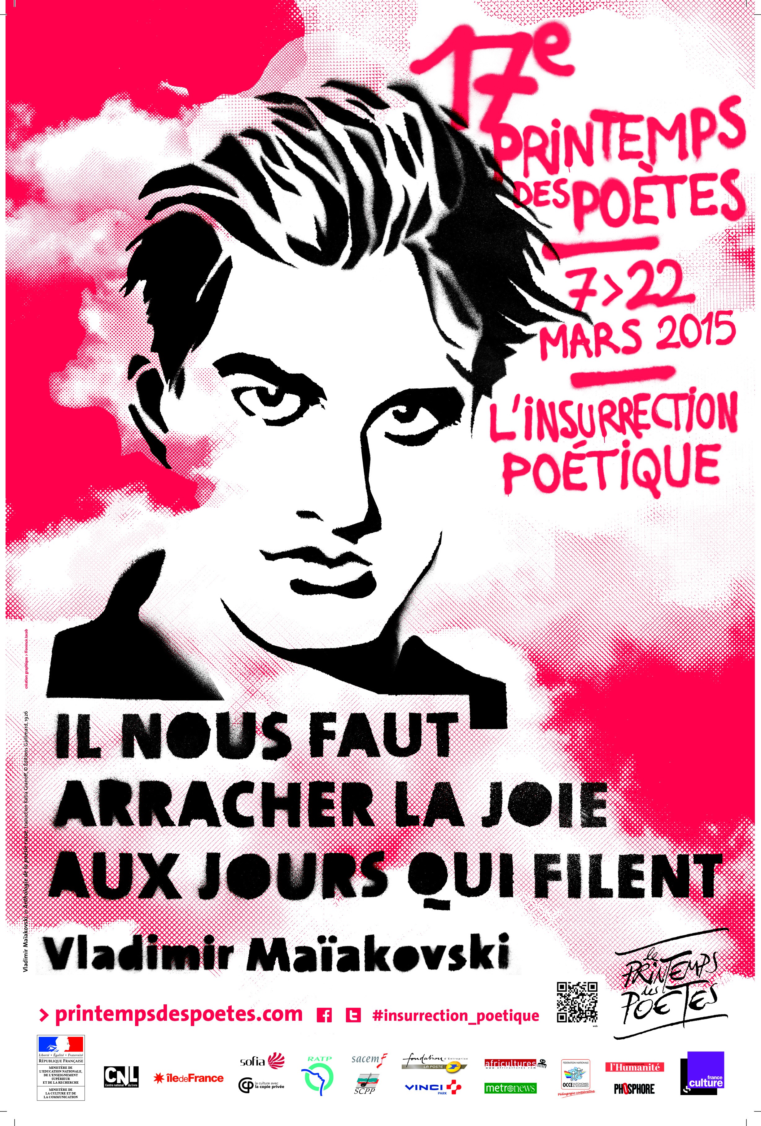 Comme chaque année, on sent que le printemps ne va plus tarder à revenir car on commencer à voir fleurir dans les librairies et les espaces culturels les affiches du Printemps des poètes. Pour sa dix-septième édition, la manifestation s’est offert une belle affiche (même si personnellement je préférais celle de l’année dernière avec le toujours aussi sexy Arthur Rimbaud). Le thème de cette année fait étrangement écho aux événements de janvier : Insurrection poétique. Une bonne intuition dont on espère qu’elle tiendra ses promesses avec une édition engagée.