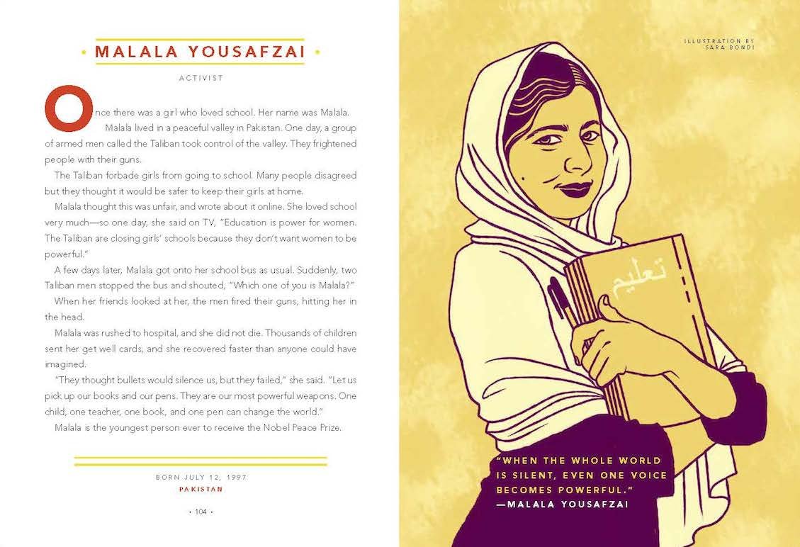 Histoires-Malala Previous Next Publié 29 novembre 2017 à 1129 × 772 dans Histoires du soir pour filles rebelles : 100 destins de femmes extraordinaires