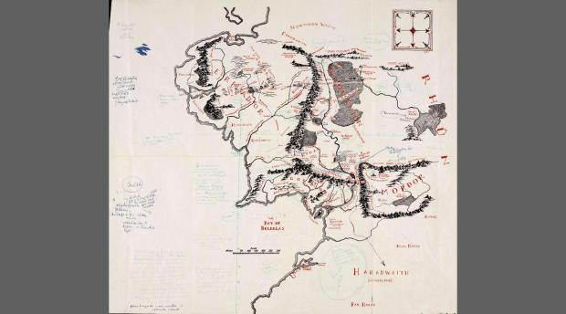 Le parti pris de cette exposition est de partir de la géographie pour faire découvrir le monde inventé par Tolkien. Un choix qui vient tout simplement du fait que Tolkien lui-même a procédé comme ça pour tout imaginer : il a d’abord eu l’idée d’un continent, et l’histoire et les personnages sont venus ensuite. Du coup, les salles d’exposition se suivent et le visiteur effectue un parcours comparable à celui de Frodon : on part de la Comté pour finalement atteindre le Mordor. Au passage, on (re)découvre toute la complexité de cette saga, ses sources d’inspiration, la manière dont Tolkien a travaillé à l’écriture de son histoire, la création de ses personnages…