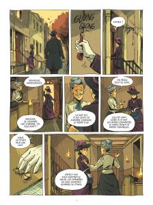 Cet aspect de l’histoire est déjà très intéressant en lui-même, mais la BD se focalise aussi sur l’histoire de Nellie. Comment cette femmes est-elle devenue reporter ? Quels ont été les obstacles sur sa route ? D’où vient son engagement en faveur des femmes ? Ces aspects biographiques sont tous abordés lors de flashbacks traités avec beaucoup d’élégance. On en apprend plus sur le passé de Nellie Bly. Comment elle est devenue journaliste. Combien de portes lui ont été fermées. De quelle façon ce reportage a fait entrer sa carrière dans une autre dimension. Et surtout quels effets il a eu par la suite. A une époque où les rédacteurs en chef ne voulaient pas engager de femmes car ils les pensaient pas assez qualifiées et trop faibles, Nellie Bly a déjoué tous les pronostics avec courage et intelligence. Mais ce parcours ne fut pas facile pour autant pour elle.